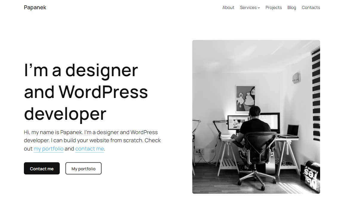 Hi, my name is Papanek. I’m a designer and WordPress developer. I can build your website from scratch. Check out my portfolio and contact me.